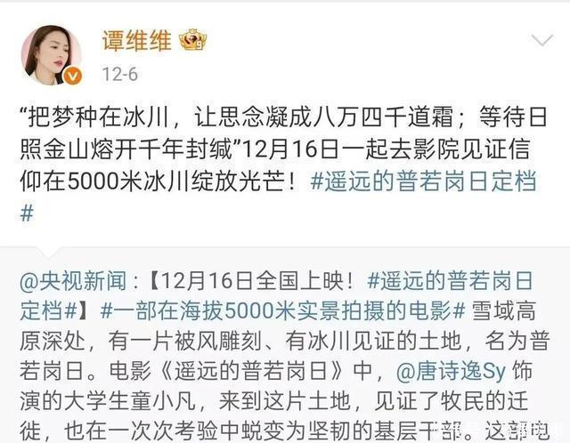 胡歌谭维维佟丽娅 等演员纷纷转发推荐 让这个高原上的真实故事 引发更广阔的共鸣